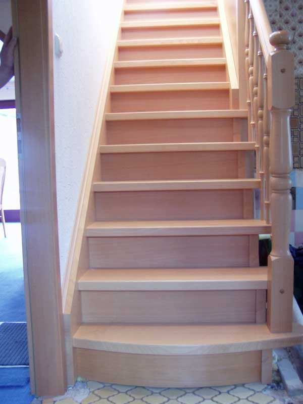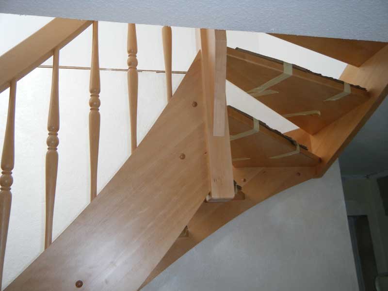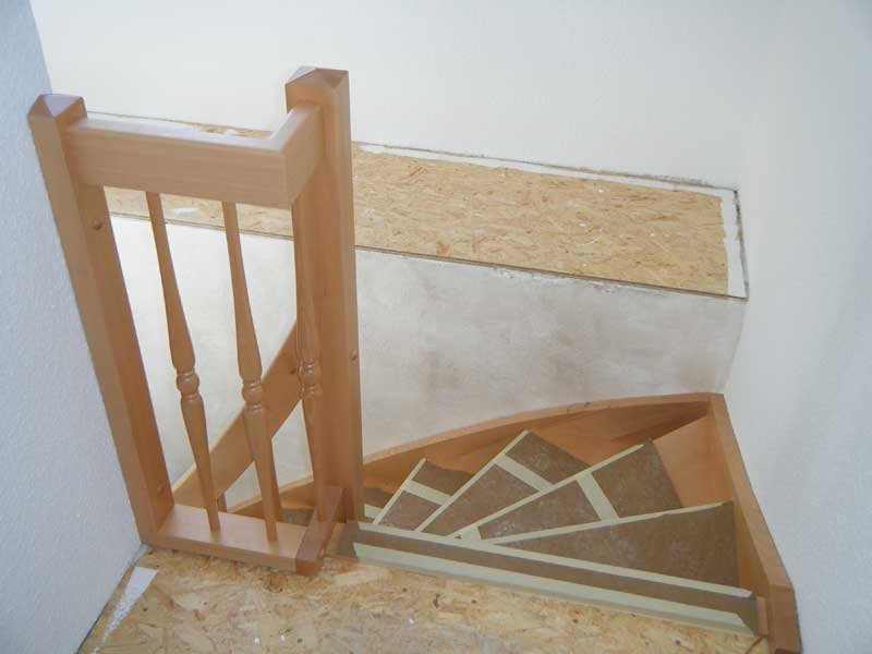 Die Treppenstufen werden von uns mit einer Weichholzplatte belegt.