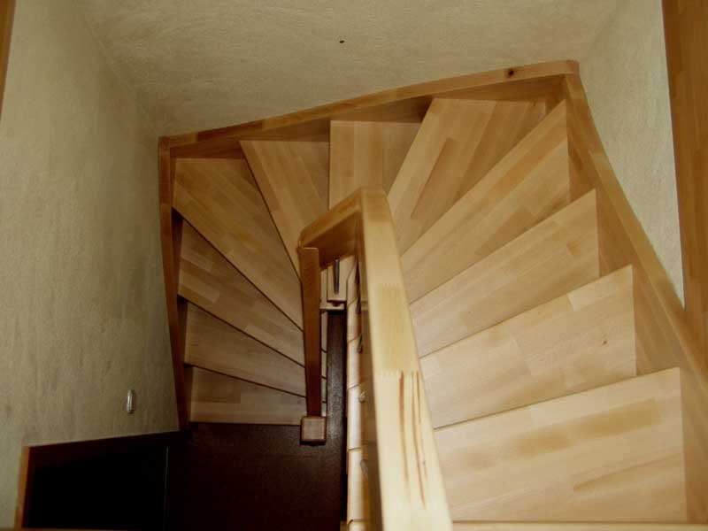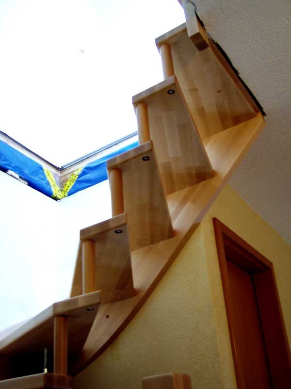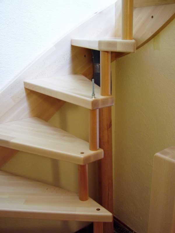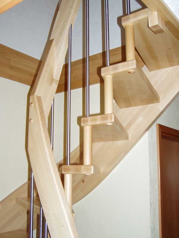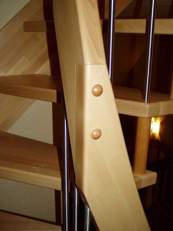 Aufbau einer Bolzentreppe aus Keilgezinkter Buche.