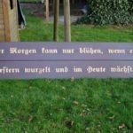 Eiche dunkel gebeitzt, mit goldener Inschrift.